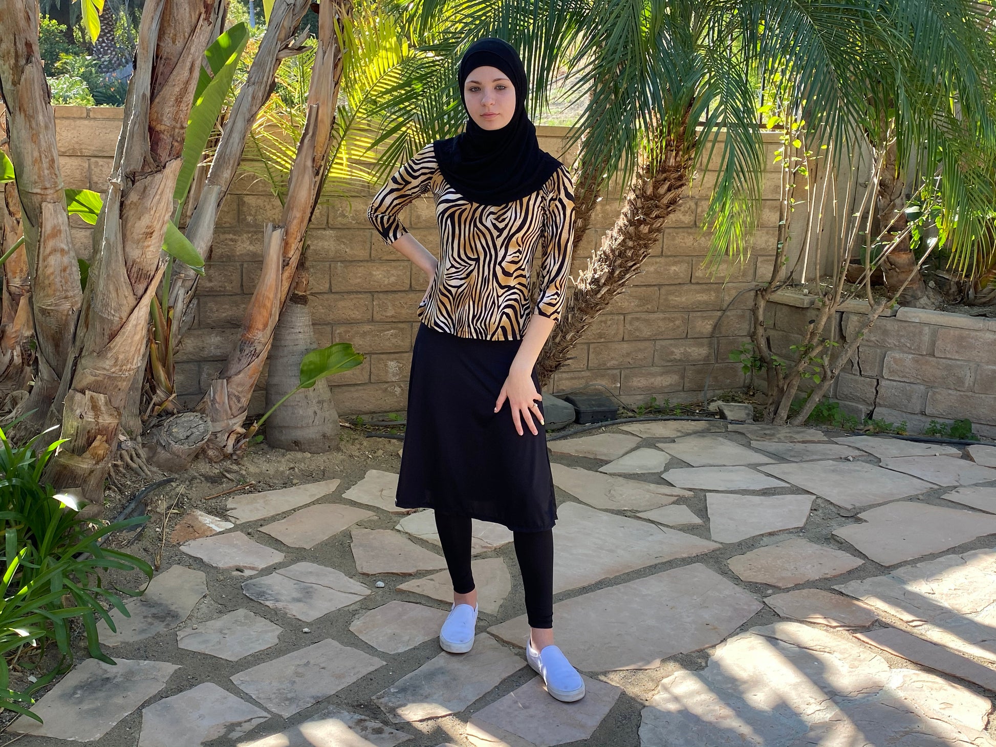 Leggings are ankle length.