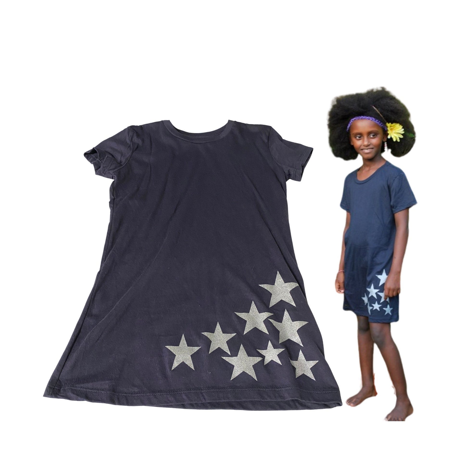 Girls' Tunic Cotton Dress Silver Stars Tunic Dress Oversize Fitted Tee Dress Tshirt Dress Tunic One Size