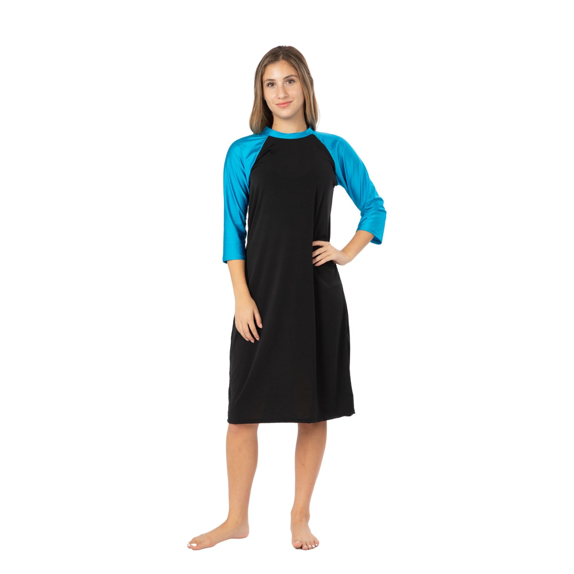 Loose Fitting Lightweight Swim Dress, Plus Size Swimwear, Modest Swimwear, Sun Protection, Fast Drying, Tznius, Burkini, S-3XL! Blue Black