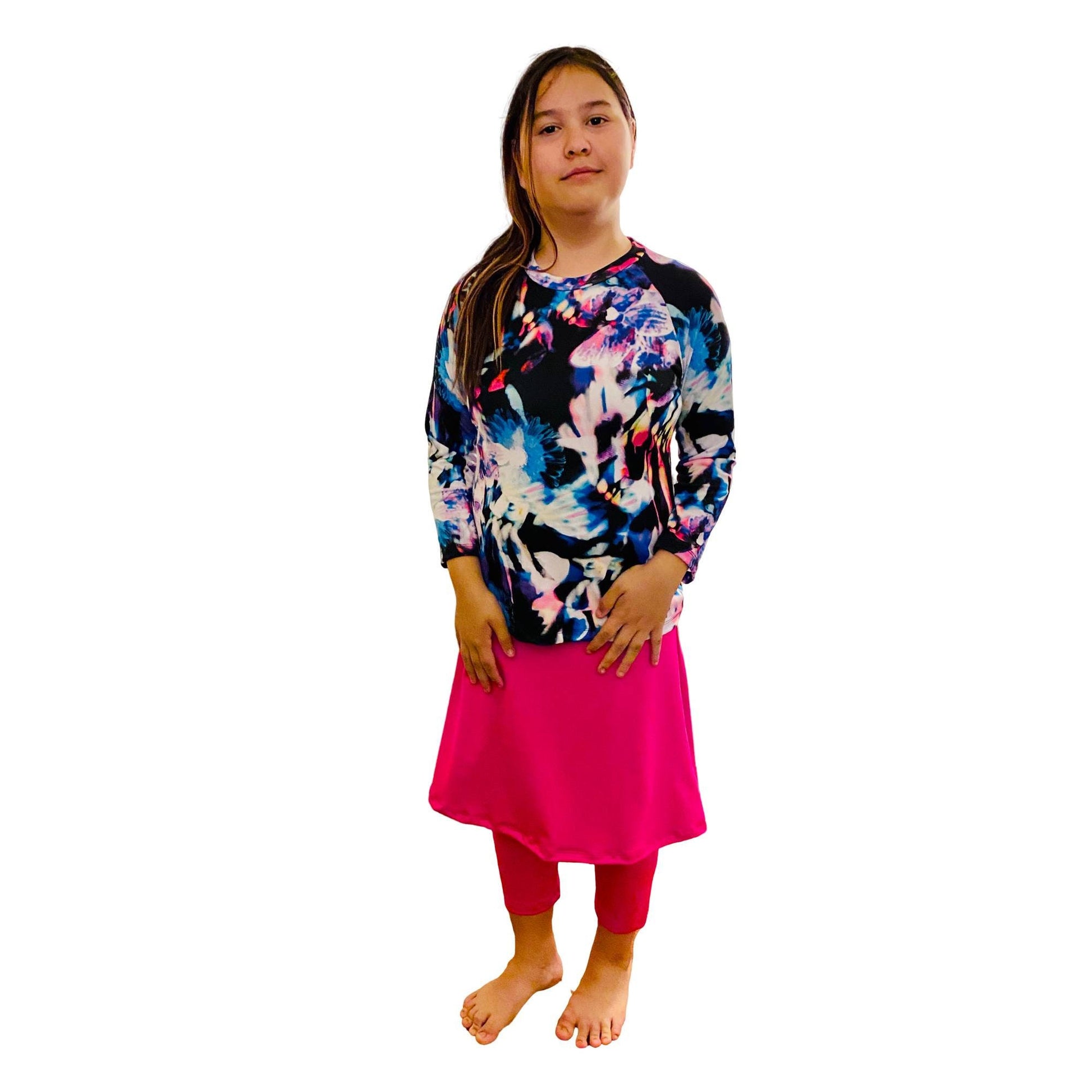 Pink swimset, Girl Modest Swimwear swim shirt, swim skirt with leggings, Tzniut Swimsuit, Islamic Girls Burkini, Complete Swim Set, Sz S-XXL